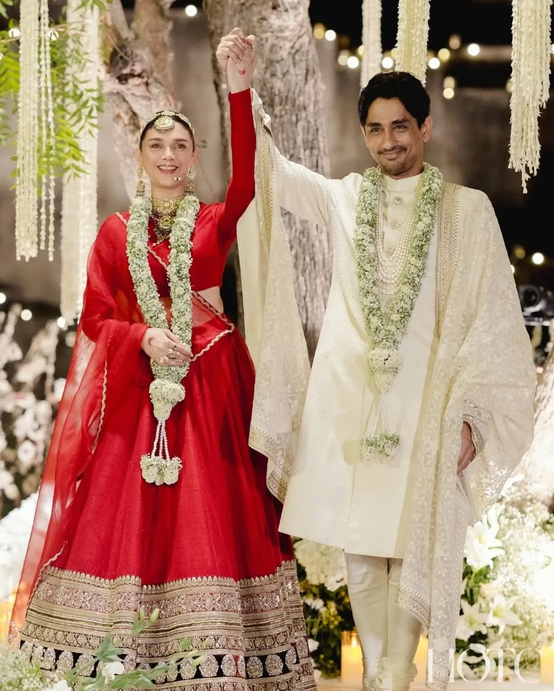 On September 16, the couple made their wedding announcement. Aditi and Siddharth wore beautiful yet understated wedding attire. In keeping with South Indian custom, Aditi wore a golden saree. Her hair was adorned with flowers. Siddharth wore a white dhoti-kurta outfit to match her.