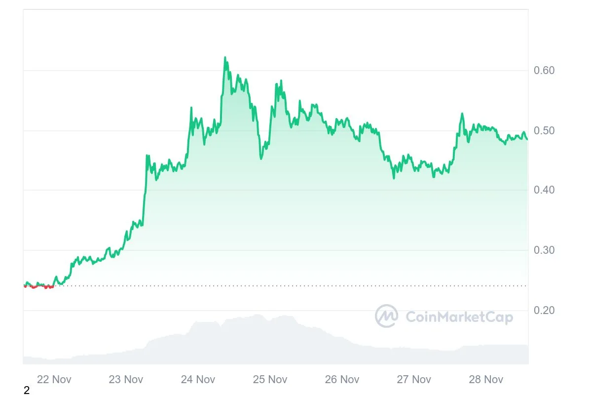 Stellar (XLM) has experienced a dramatic price surge, doubling its value in just seven days. As of November 29, 2024, Stellar’s price stands at $0.4837, reflecting a significant increase from its previous value.