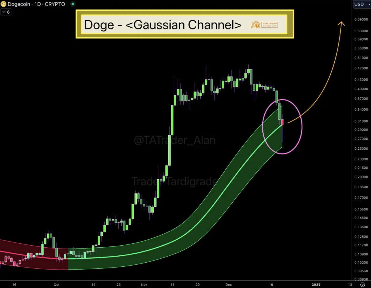 According to crypto analyst Trader Tardigrade, Dogecoin’s recent decline has seen it interact with the Gaussian Channel, indicating the potential for a significant price increase.