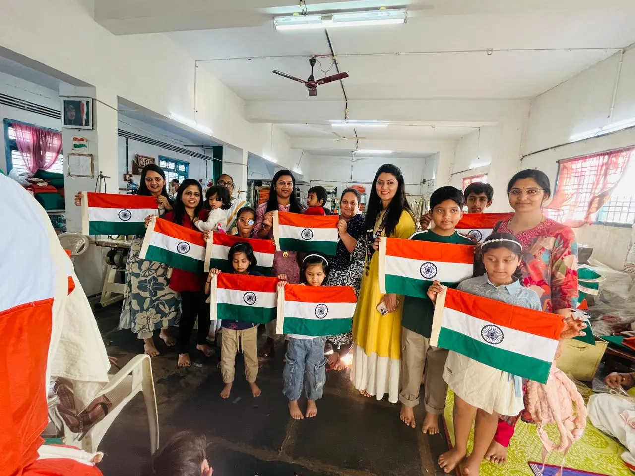 The children and their mothers learned about the intricate process of manufacturing the Indian National Flag, fostering a sense of patriotism and responsibility.
