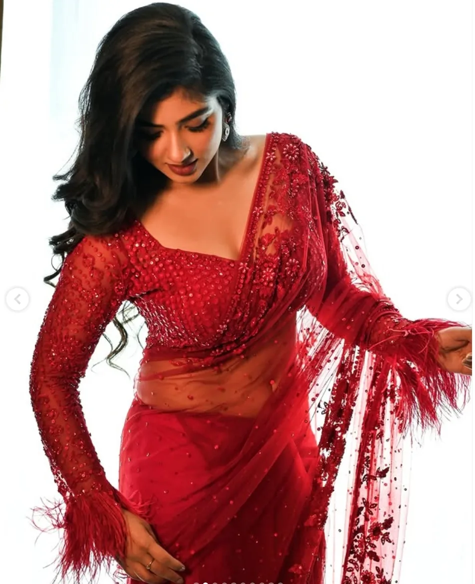 Pragya Nagra is winning hearts again. The South Indian actress shared a new Instagram reel that went viral. She looked stunning in a red net saree with floral embroidery. She paired it with a full-sleeved blouse with ruffled cuffs. Her open-curled hair made her look even more beautiful. Fans loved her graceful expressions and elegant style.