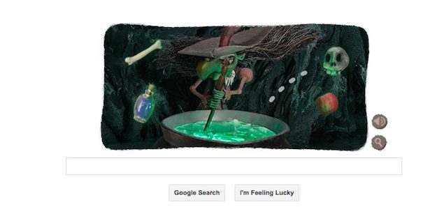 Google is celebrating Halloween today on Oct 31, 2013 with an interactive Halloween themed doodle. On opening the Google search page, a green-faced witch with a long, pointed noise and straggly hair can be seen flipping through pages of a spell book.