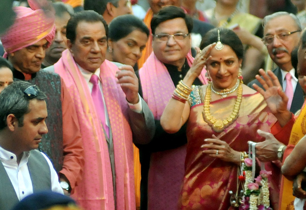 Among the stars were Ranveer Singh and Deepika Padukone, Sonakshi Sinha, Rekha , Amar Singh, industrialist Ambanis and yoga guru Baba Ramdev. Ahana and Vaibhav had a Punjabi as well as South Indian style of wedding.
