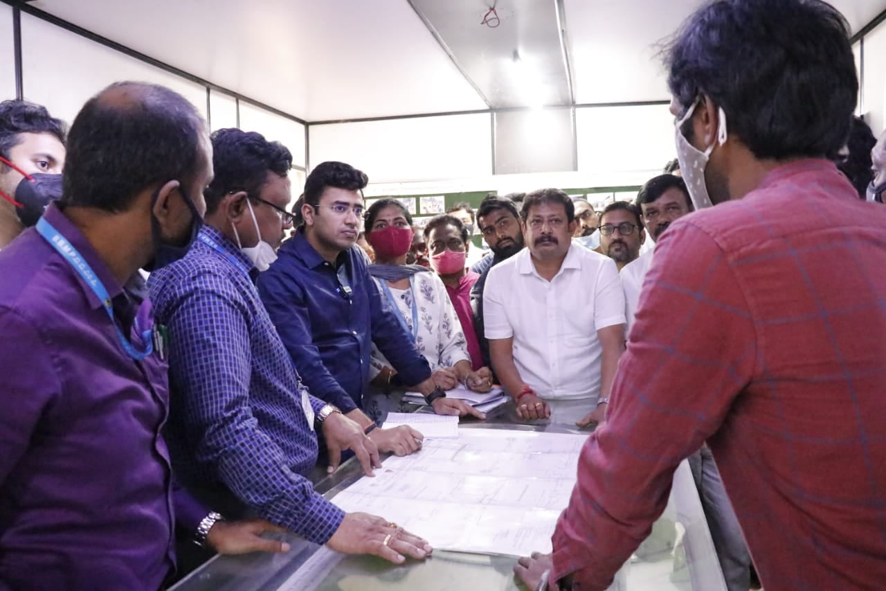Bengaluru South MP Tejasvi Surya is again busy with his city’s development. On December 18, 2021, the dynamic MP, who is also the Youth Wing head of the BJP, inspected the construction work of the Ejipura Flyover in Koramangala. He posted on his social media handles about the inspection and uploaded photos of the same.