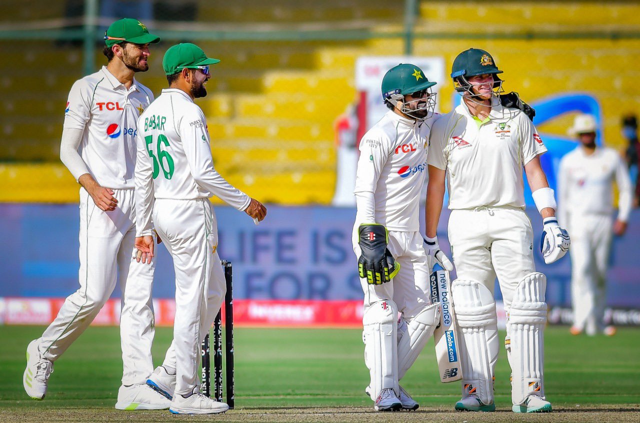 The second Cricket Test between Pakistan and Australia is being played in Karachi from March 12-17, 2022. The match start time is 10 AM Pakistan time.