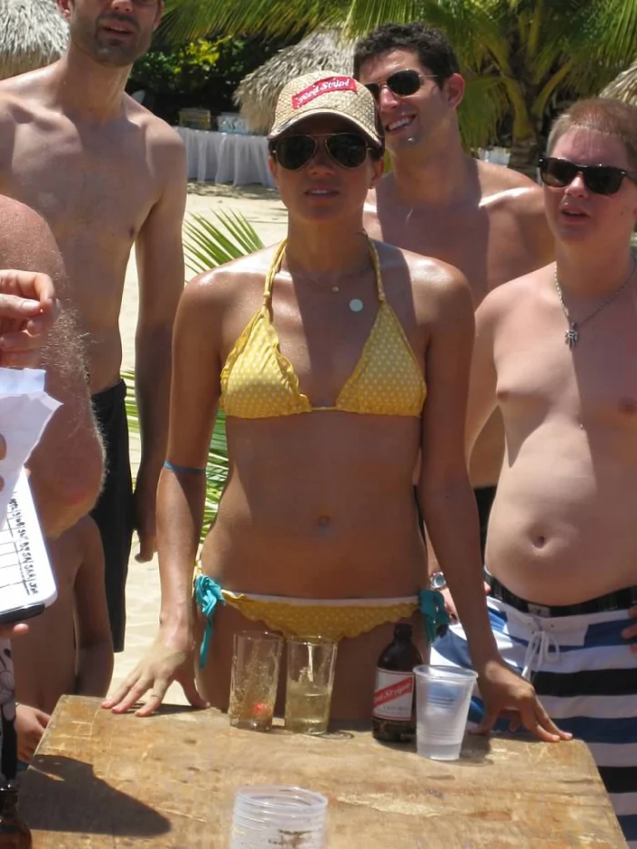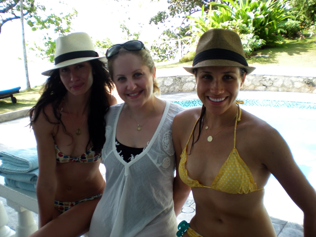 Throughout her September 2011 wedding weekend with her first husband, Trevor Engelson, Meghan was seen rocking an adorable yellow polka dot swimsuit with some pals in Jamaica.
