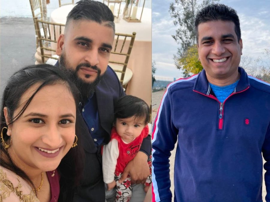 8-month-old Aroohi Dheri, her mother Jasleen Kaur (27) and her father Jasdeep Singh, left, and Amandeep Singh, right, remain missing