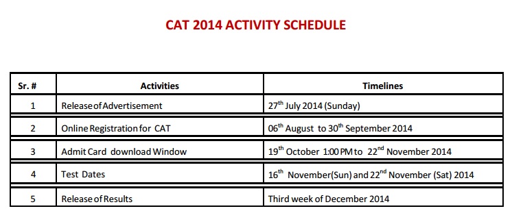 This year, the CAT exam was taken between November 16 and November 22, 2014.