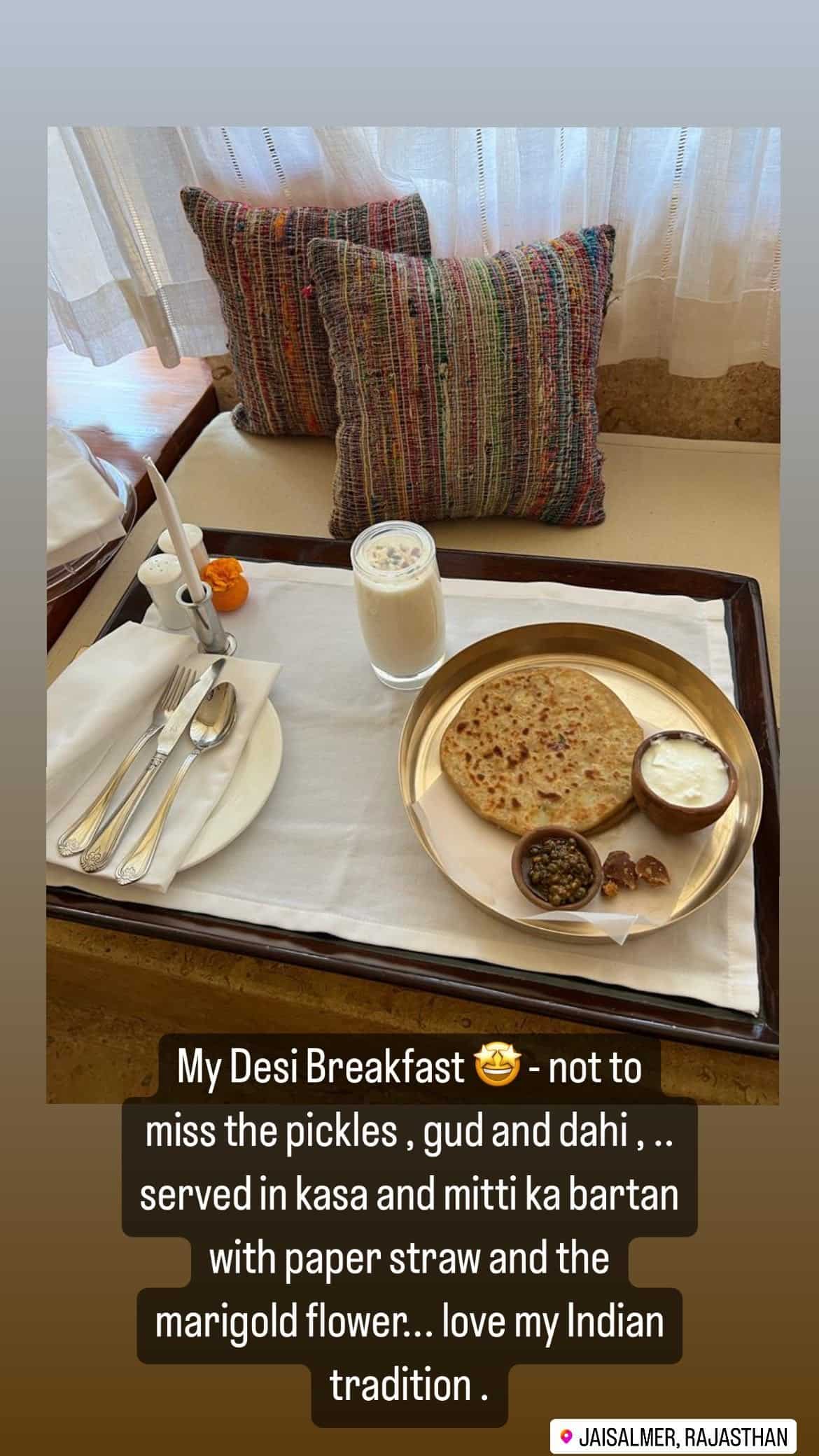 Juhi Chawla’s breakfast at Suryagarh Palace