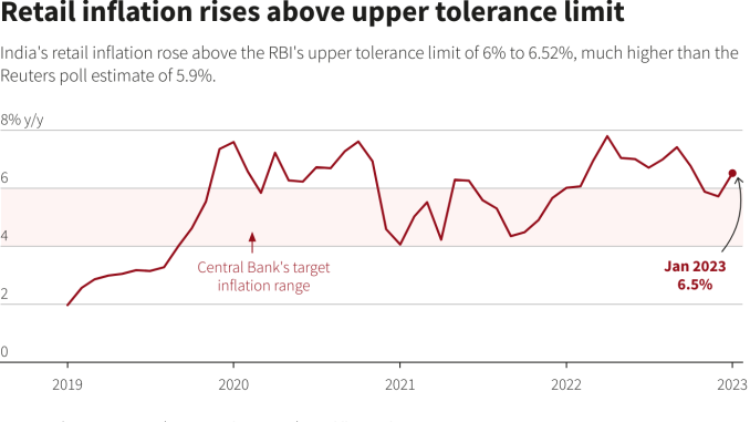 The current data shows that from Jan to Feb, the inflation rate decreased but very little and marginally, from 6.50% in January to 6.44% in February.