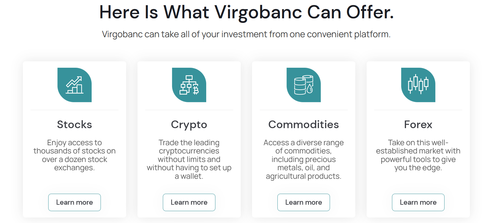 Virgobanc is an online broker that provides traders access to a variety of financial instruments, including stocks, currencies, and commodities, along with cryptocurrencies.