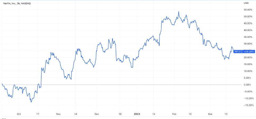 But since the beginning of February, the trend has changed. Most likely it was caused by the news of Netflix restricting password sharing and cutting subscription prices in over 30 countries. The streaming company made these decisions in response to a drop in the number of users, increasing competition in the industry, and the economic crisis the world finds itself in.