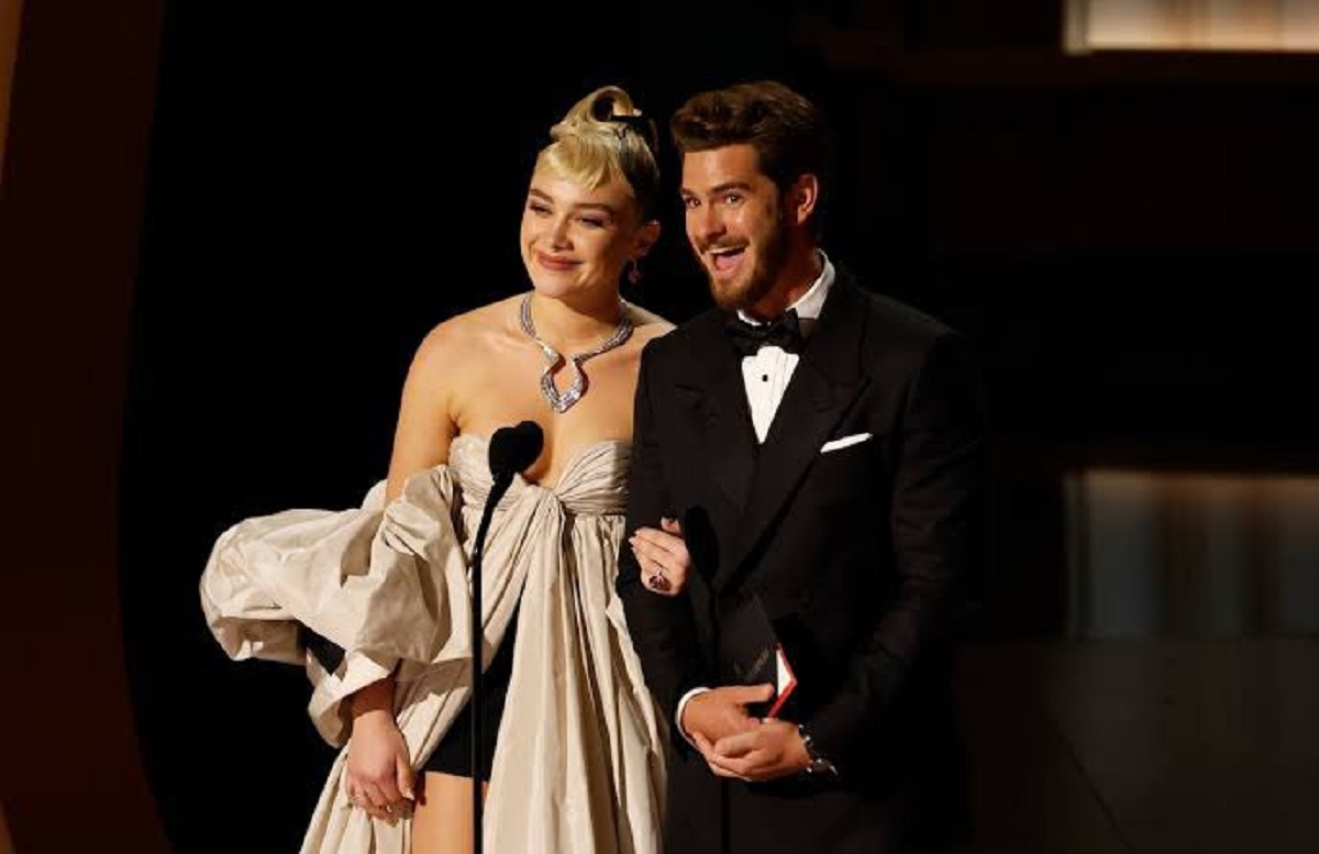 Pugh plays a journalist who travels to the future to interview Garfield’s character, a scientist who has discovered a way to manipulate time. The movie is directed by David Lowery, who previously worked with Garfield on ‘The Green Knight.’