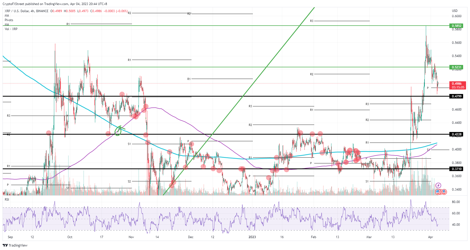 Hope everyone is enjoying their weekend! I'm still going to consider this W4 on #XRP bc it didnt break above the .5 yet (and the 236). That's my point of invalidation… as long as we're under that, we have the 382 fib at $.494 as a buy target! #Ripple pic.twitter.com/5Jfgz71OTf