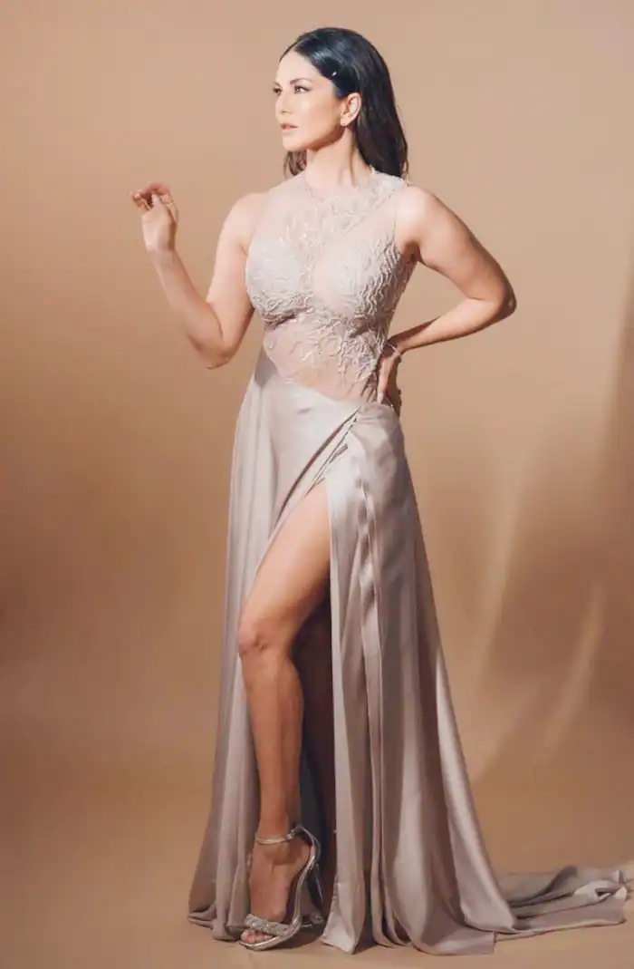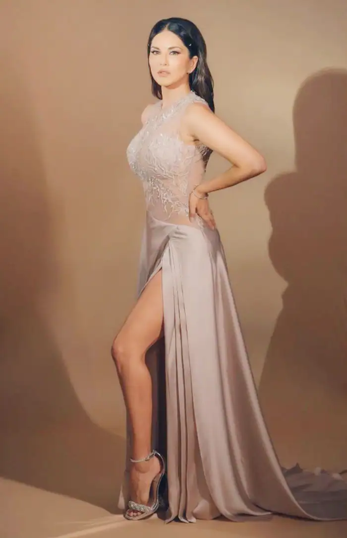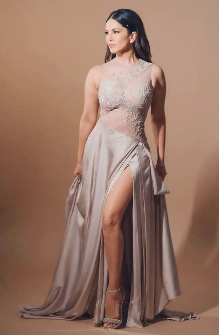 She has also ventured into regional cinema, web series, and reality shows. Sunny posted some of her stunning pictures in a silver satin gown with sparkly embroidery that she recently shared on her Instagram account.