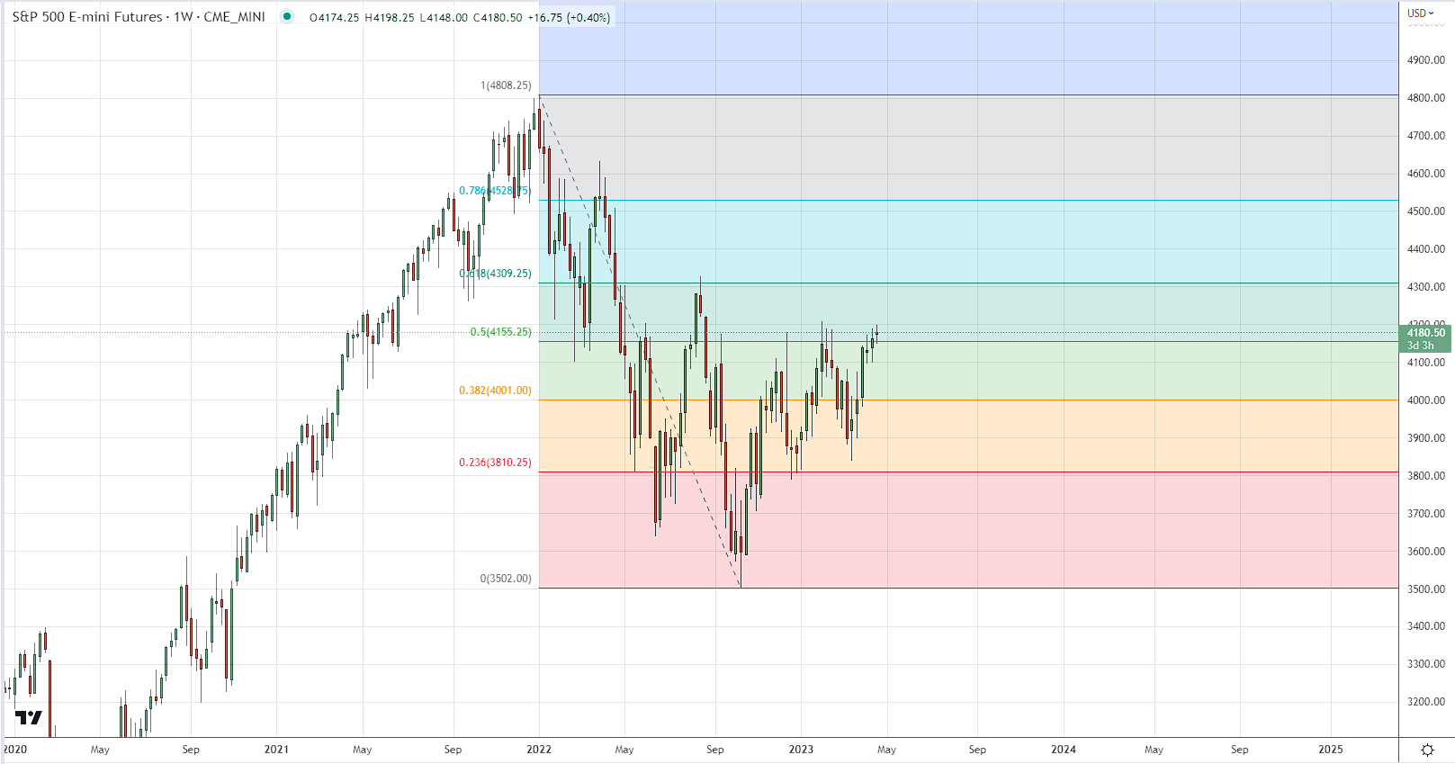 The current resistance coincides with the 0.5 level, which has probably already been tested, but it is worth allowing a potential false breakout. As well as support at 0.382, which, although it has been repeatedly tested, remains relevant to this day. The next target for buyers in the 4300 area, where the high remained after the increase in August 2022, coincides with 0.618.