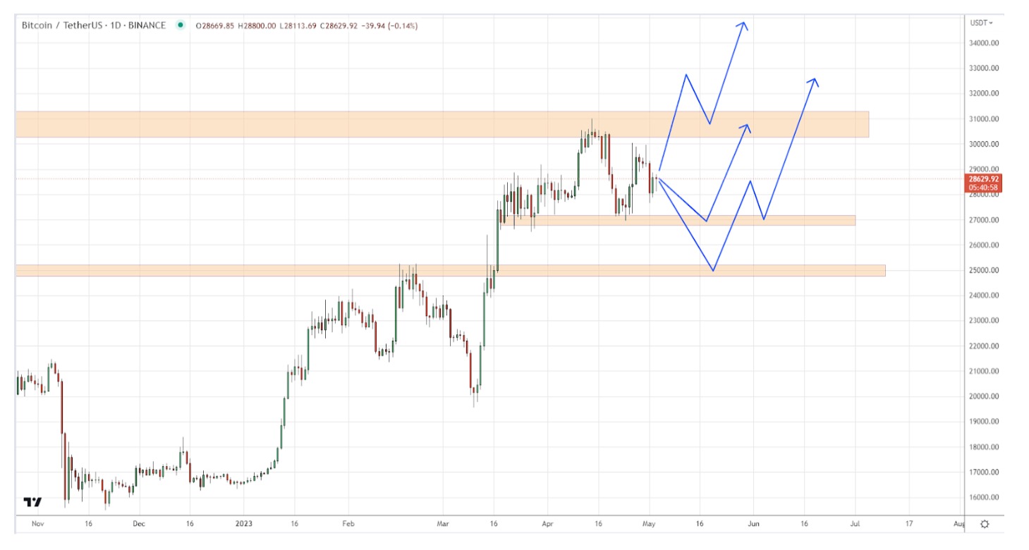 We already know where there is a resistance of $31,000. This is the main goal for bulls, and it is important for them to break through it and open their way to new highs. The support is also extremely clear. It is worth adding, in addition to $25,000, which has become a mirror, another new $27,000, which has already bounced the price back several times. Therefore, the following movements are understandable for both parties.