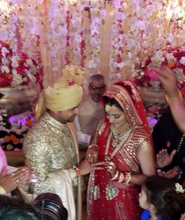 Many Indian cricketers like MS Dhoni and wife Sakshi, Virat Kohli and his Bollywood actress girlfriend Anushka Sharma, ICC Chairman N Srinivasan, Uttar Pradesh Chief Minister Akhilesh Yadav were seen in attendance at the wedding.