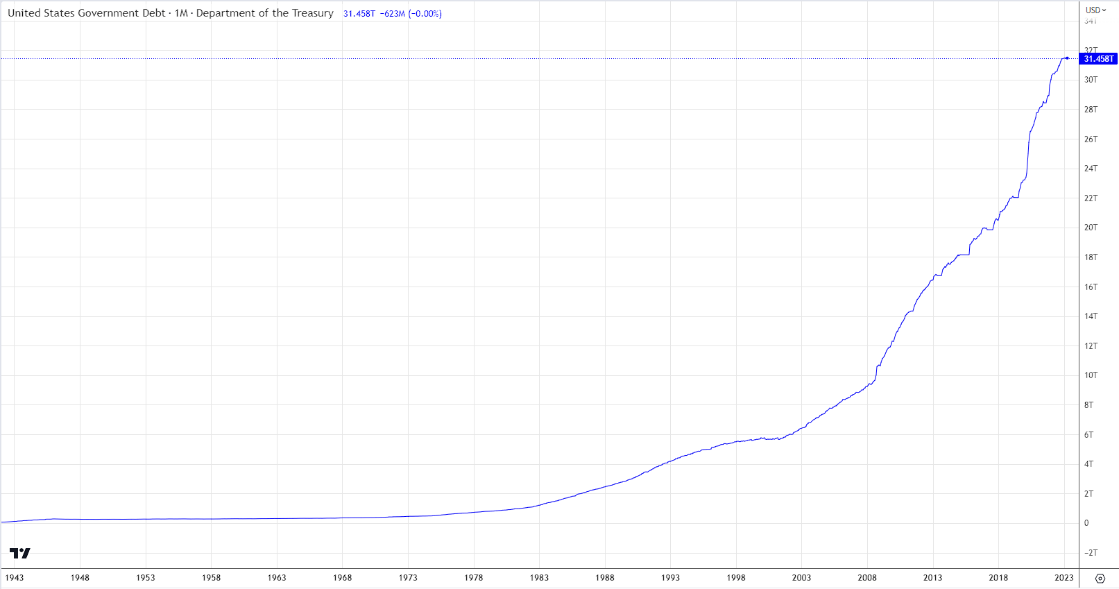 The US national debt hit its maximum possible level of $31.4 trillion at the beginning of this year. The US Treasury warned that the government could lose the ability to meet its debt obligations by June. The Republican-led US House of Representatives has proposed raising the national debt limit by $1.5 trillion in exchange for $4.8 trillion budget cut. That should be enough to prevent the Default for another year, until around the end of March 2024.