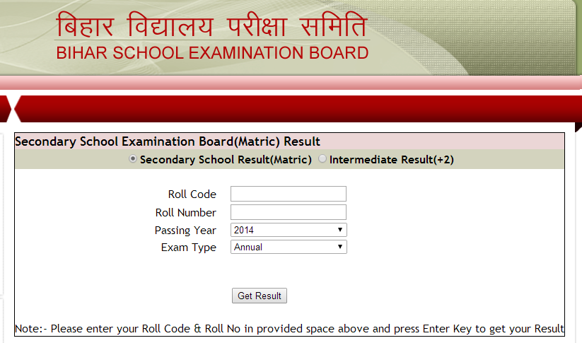 After visiting this site www.biharonline.gov.in .Please select the option “Secondary School Result(Matric)”, enter your Roll Code, with following Roll Number, Year as well as the Exam Type, Check the result by clicking at the tab Get Result.