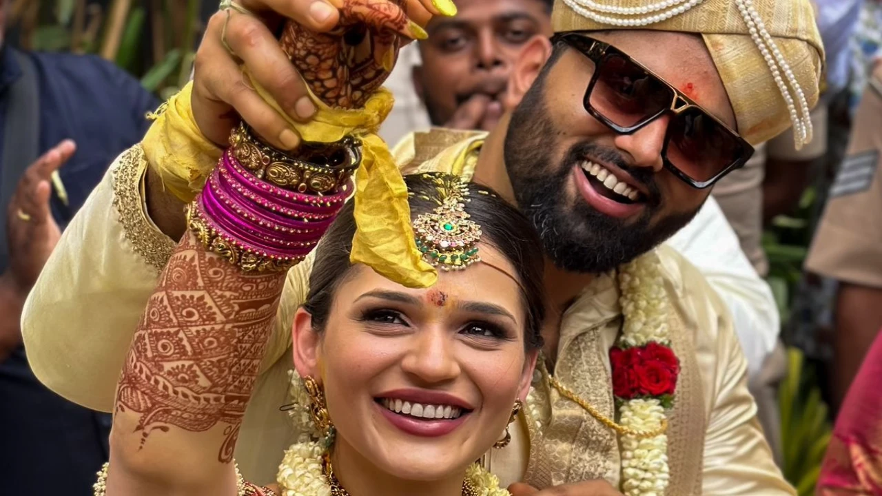 The wedding ceremony was held at a private resort in Nelamangala, about 30 km from Bengaluru. The bride is Vijetha Gowda, the daughter of businessman Ramesh Gowda and Geetha.