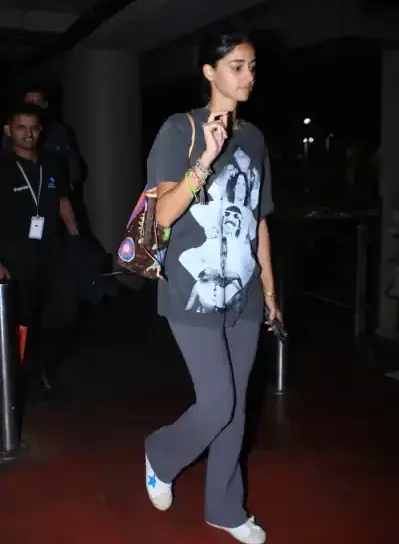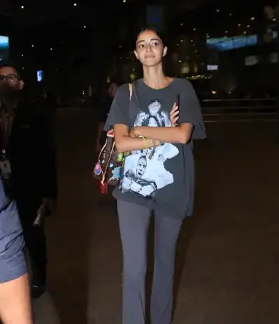 On the other hand, Ananya Panday was wearing an oversized grey t-shirt, and a pair of matching slim-fit trousers complemented with a no-makeup look and a messy bun.