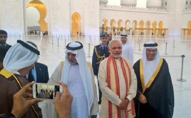 Modi visited the spectacular Sheikh Zayed mosque, the third largest in the world, on Sunday in Abu Dhabi on Sunday and wrote in the visitors book: