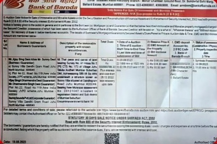 The Bank of Baroda tender announcement says actor Sunny Deol has the option to settle anti-competitive debt under the provisions of the Sarfaesi Act, 2002G Gurdaspur MP, whose latest movie “Gadar 2” was a blockbuster, has grossed over Rs 300 since its release.
