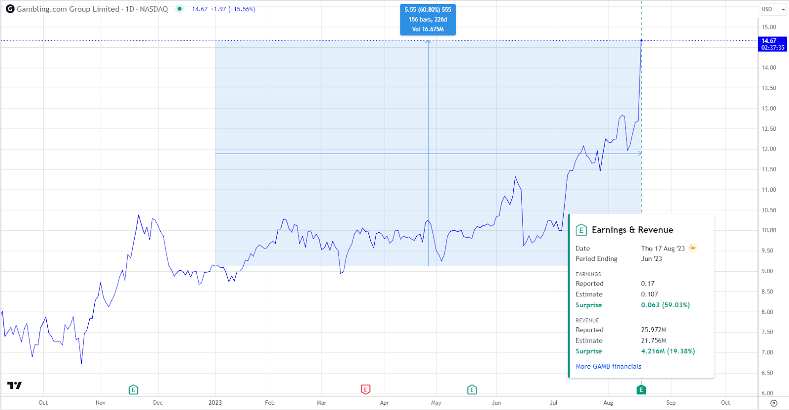 But guess what? This is how you can find some seriously promising stocks. In general, companies frequently land on lists that show some inadequate figures. But upon closer inspection, it typically reveals that it’s due to a second-tier IPO or maybe some intriguing financial reports have hit the scene. This happened on August 17, 2023, when Gambling.com Group Limited (NASDAQ:GAMB) unexpectedly showed up on the roll of companies with the biggest changes in a day and a week.