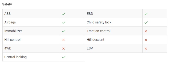 All variants will have ABS, EBD and dual front airbags as Standard package.