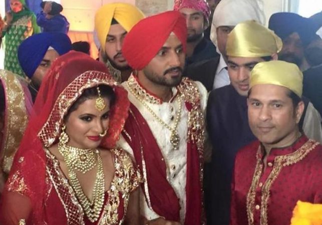 Yuvraj Singh took a break from his Ranji Trophy match to attend Harbhajan’s wedding reception.