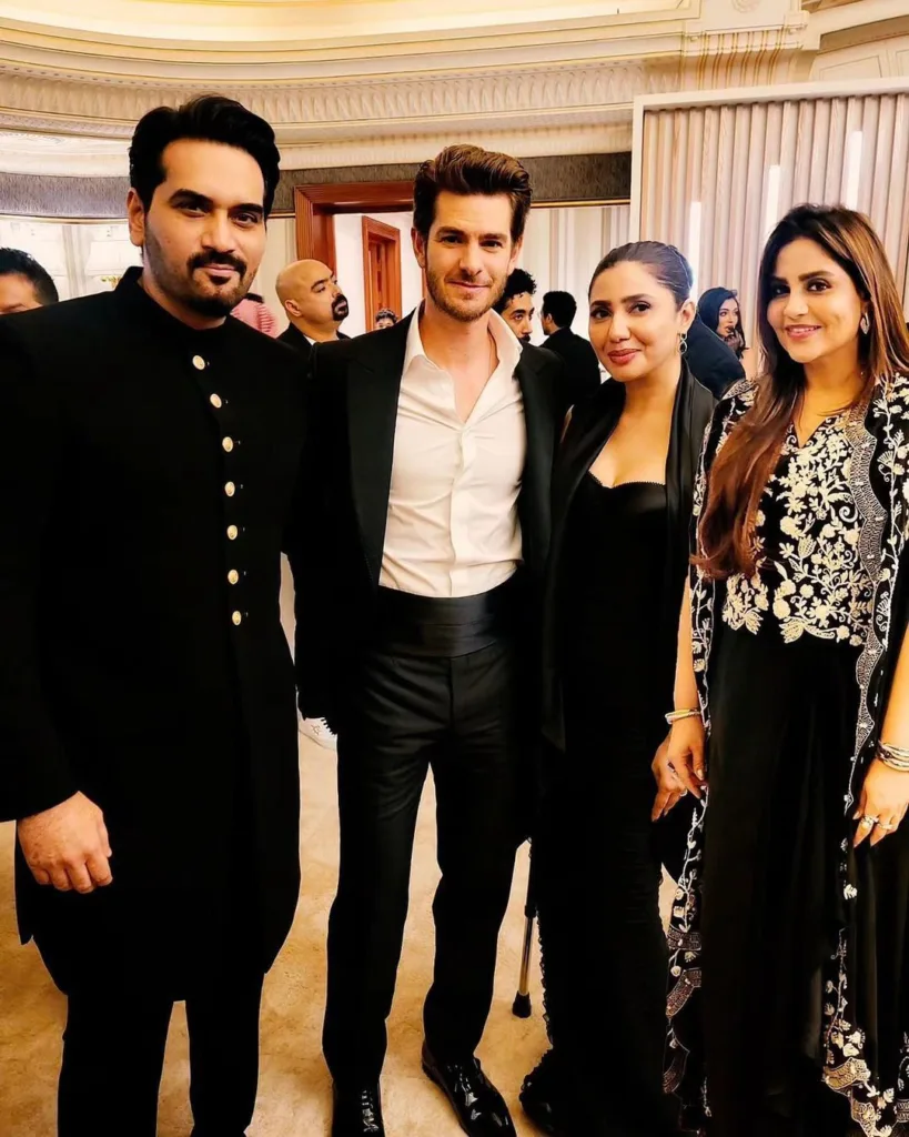 Adding to the excitement, another photo of Mahira Khan, another renowned Pakistani actress, surfaced online, showcasing her alongside Saeed and Hollywood heartthrob Andrew Garfield. This image set social media ablaze, garnering massive reactions from fans.