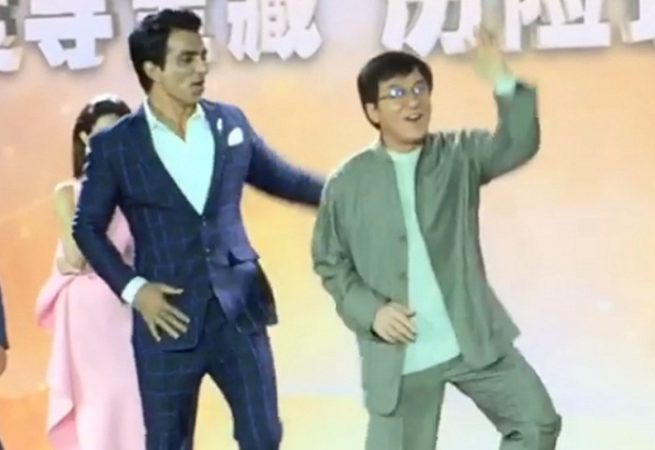 Legendary martial artist-actor Jackie Chan, accompanied by actor Sonu Sood, in a rare scene was seen grooving to the Daler Mehendi Punjabi number ‘Tunak tunak tun’, at the 19th Shanghai International Film Festival, on 14 June.