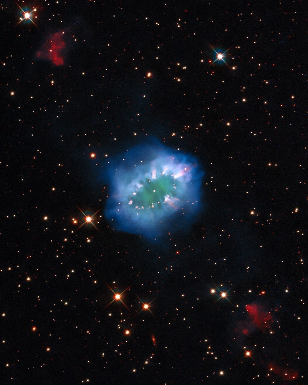 The space agency added a sample of the image: “A small bright green region of gas is made of pale stone like a Diamond on a Neck.” The ring made of cosmic material concentrated inside the ball formed. The rest of the image shows black space dotted with a few bright stars and a small area of black gas.