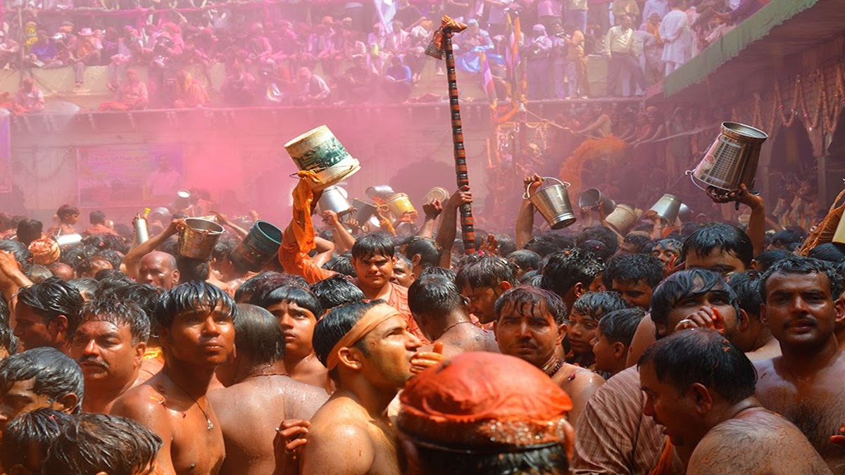 Huranga is a hostile version of playing Holi. According to Bhagavata Purana, Lord Krishna along with his beloved Radha and Gopis went to Barsana and Vrindavan to play Holi. But, one day, Krishna’s elder brother Baldev(Dau ji) decided to ditch Krishna and play Holi all by himself, thus creating mischief(huranga in local dialect) and performing Ras Lila for the gopis.