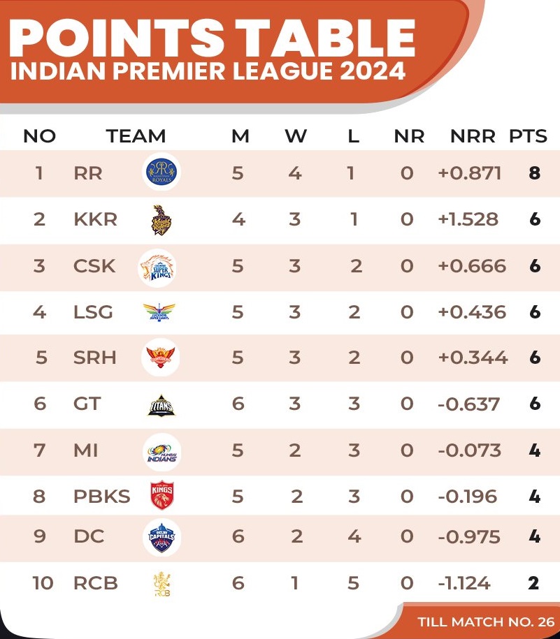 Both RR and PBKS played 26 matches and RR had 15 wins, while PBKS, has 11 wins.
