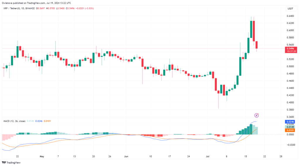 XRP has indeed surged above $0.58 for the first time since the market-wide retrace back in April. This rebound is supported by increased coin holdings from whales and sharks who possess 100,000 or more XRP coins. The trend of supply accumulation began last August, contributing to the recent comeback. As of now, XRP is trading at $0.57, experiencing an 8% decline in the last 24 hours, according to Bitcoinist.