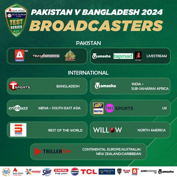 Live on T Sports and Gazi TV#BCB #Cricket #BDCricket #Bangladesh #PAKvBAN #WTC25 pic.twitter.com/hyOcdkMMTs— Bangladesh Cricket (@BCBtigers) August 20, 2024