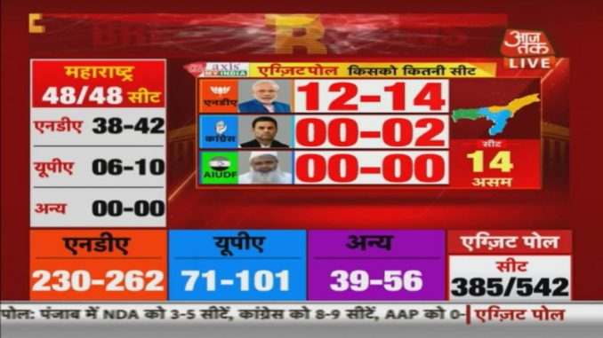Exit poll has predicted 339-365 Lok Sabha seats for NDA.