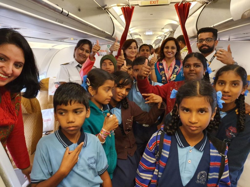 They started off this project by taking 10 Meritorious Children and a teacher from Sahasrarjuna School Hubli to Bangalore by Air India Flight with the flight duration of 4 hours via Mumbai on 5th August 2019, giving them an experience of FLYING!