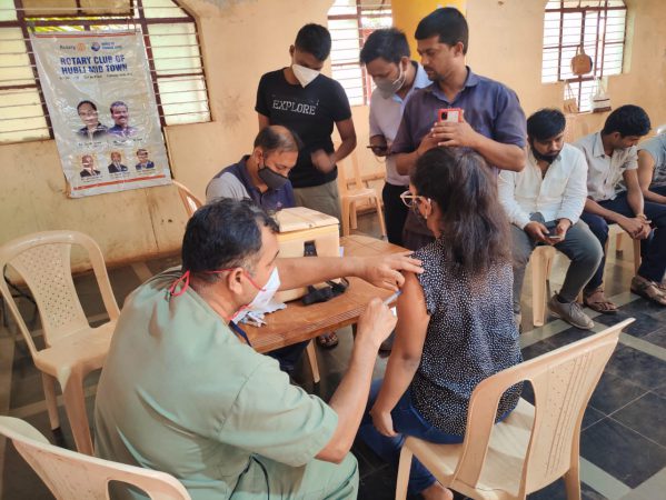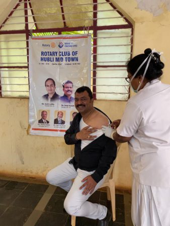 HUDA Chairman Nagesh Kalburgi inaugurated the Vaccination Drive. Er Gulzar from RC Hubli Midtown, Siddesh Kabadar, Vivek Jigalur from Akshay Park Apartment Association, Basker Head Nurse, Ramu, and other HDMC staff were present.