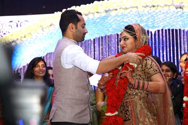 The stage resembled a movie set with the couple’s initials engraved in the backdrop. The wedding feast had 70 varieties of delicacies for the guests. The media was kept away from the nikkah ceremony with a special chip embedded in the invite for the identification of guests and keeping gate crashers at bay. A reception will be held on August 24 at Fahadh’s hometown Pathirapally, in Alleppey.