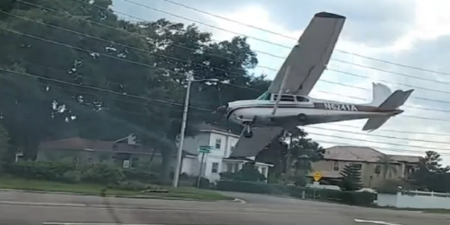 The Cessna 182 plane is seen crashing on Friday, Aug. 19, in Orlando, Fla.