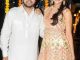 The actress chose to a Kumar collection in blue, while her husband and director Sahil Sangha chose to wear a stunning outfit by designer Raghavendra Rathore.