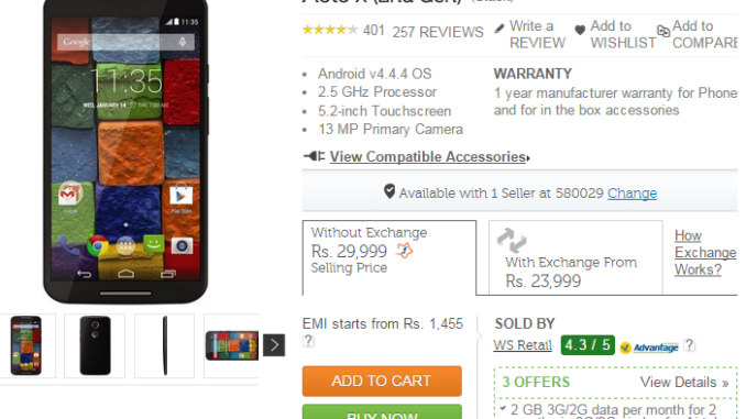 Motorola is also selling the Moto X (2nd Generation) 16GB, which is available fora price of Rs 29,999 for the base variant. Buyers will have to shell Rs. 2,000 more for the other variants –leather panel and wood finish.