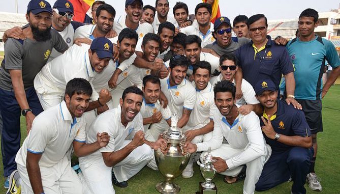 Karnataka team : Robin Uthappa, KL Rahul, R Samarth, MK Pandey, KK Nair, SA Bhavane, S Gopal, R Vinay Kumar, A Mithun, S Aravind and HS Sharath.
